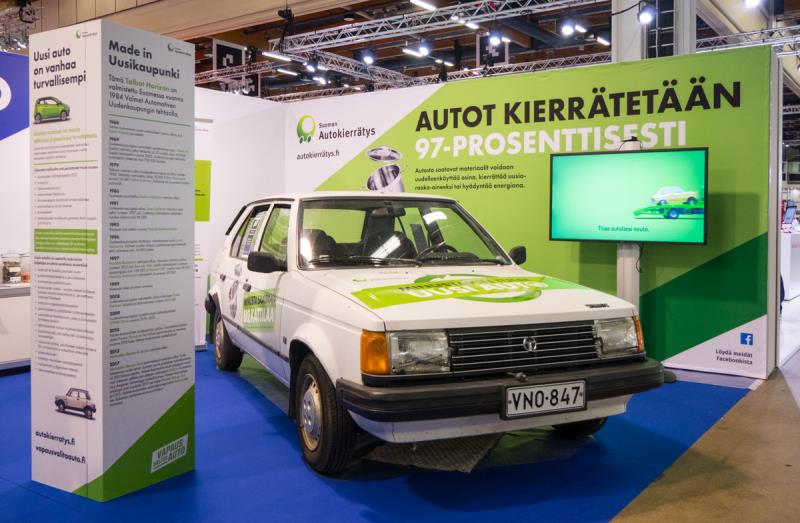 Matkalla pihalle kevytautojen koeajopisteelle ohitin Suomen autokierrätyksen ständin, jota en itse asiassa pystynytkään ohittamaan. Viimeinen niitti kevytautojen koeajosuunnitelmien arkkuun!