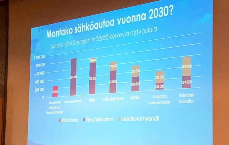 Monet tahot ovat esittäneet a(r)vauksia sähköautojen määrästä vuonna 2030. Merilinna keräsi kaikki vaihtoehdot yhteen kaavioon.