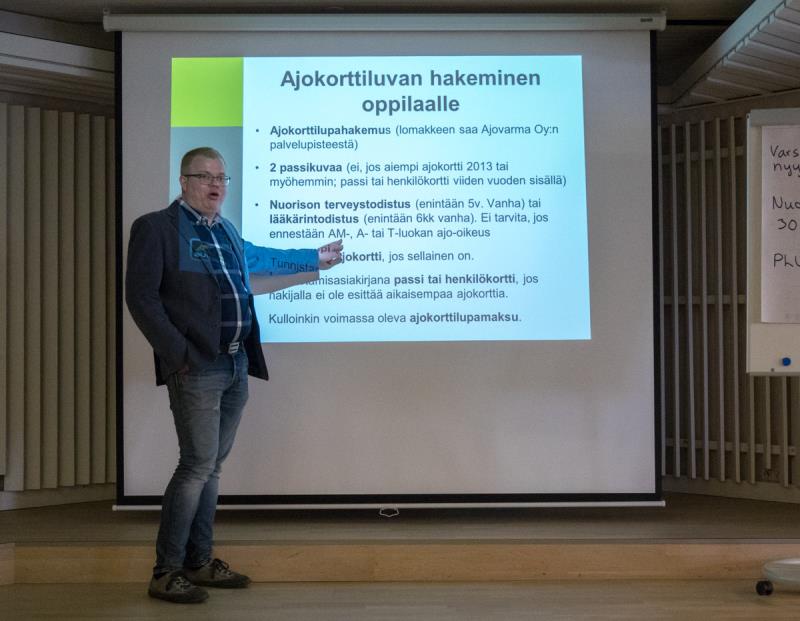 Tilaisuuden puhuja, Autoliiton koulutuspäällikkö Teppo Vesalainen, kertoi aluksi opetusluvan eduista. Sen suurin vahvuus on luonnollisesti valtavat ajomäärät. Etenkin jos oplun hankkii heti kuin mahdollista eli 17-vuotiaana, ehtii ennen 18-vuotissyntymäpäivää ajaa periaatteessa tuhansia kilometrejä. Opetusluvan etuna on myös se, että ajokokemusta on mahdollista kerryttää kelissä kuin kelissä. Samalla vanhemmat ja nuoret saavat viettää yhdessä aikaa ennen kuin nuori lentää pesästä.