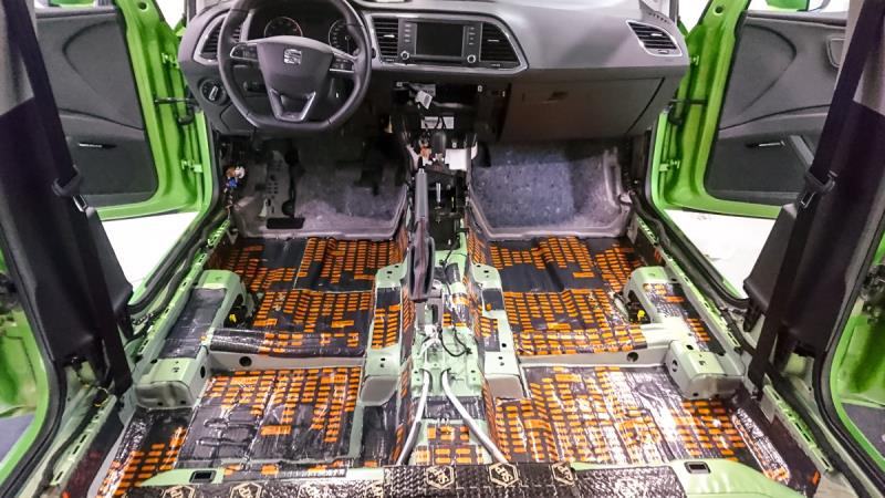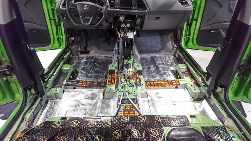 Lattian vaimentamista varten auton sisusta piti purkaa lähes kokonaan pois, mikä on varsin aikaa vievää hommaa.