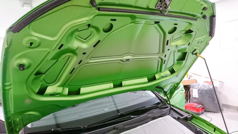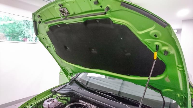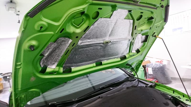 Kertoessani somessa äänieristyssuunnitelmistani minulle suositeltiin, että auton konepelti kannattaisi myös eristää. En ollut ihan varma sen hyödyllisyydestä, mutta kun auto nyt kerran oli Audiovisionilla, niin teetin sitten senkin.