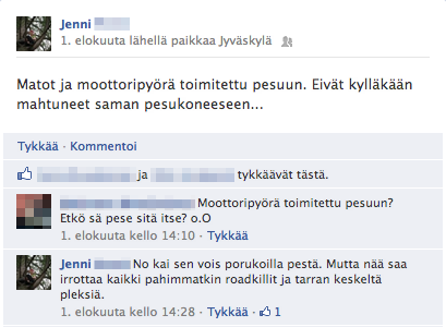 Joops ei siinä pyörässä hirveästi pintaa kyllä ole. Ite oon moottoripyöräilijänä sokerista eli en aja sateella eikä pyörä siten juurikaan rapaannu. Itikoita sen sijaan on ihan riittävästi keulalla...