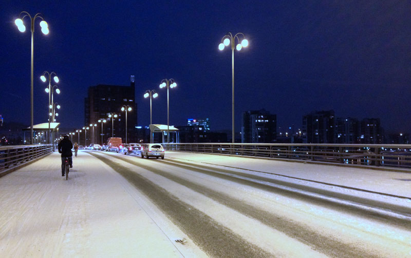 Perjantaiaamuna herättiinkin sitten talveen! Varovasti ajelin polkupyörällä töihin, sillä oli hieman liukasta. Aika monella kuului olevan vielä kesärenkaat alla, mutta tuoreilla nastarenkaillakin oli kuulemma ollut liukasta. Työpaikan läheiseen liikenteenjakajaan oli ilmeisesti ajanut parikin autoa, ei tosin meiltä töistä kukaan.