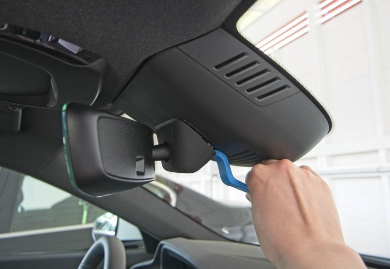Pelkäsin etukäteen, että taustapeilin kotelo olisi vaikea saada irti, mutta kaikkea muuta. Ainakin kesäkelissä kotelo jousti sen verran, että se irtosi helposti kameran mukana tulleella työkalulla kiilaamalla, eikä missään vaiheessa tuntunut siltä, että joutuisin käyttämään voimaa tai että osa halkeaisi.