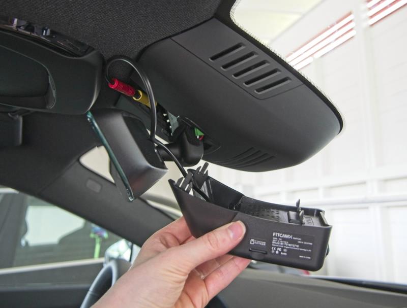 Sitten mieheni bongasi Polestar-foorumilta kiinnostavan vaihtoehdon: Fitcamx-kojelautakamera, joka ottaa virran suoraan auton taustapeilin takana (edessä?) olevasta kotelosta haaroittimella. Siitä on eri automalleihin omat versionsa ja asennus taustapeilin kotelon alle on OEM-tyylinen eli näyttää siltä, kuin kamera olisi ollut autossa tehtaalta saakka.