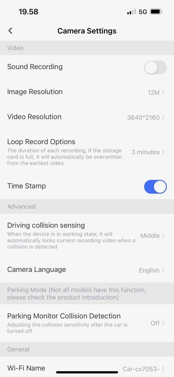 Sovelluksen asetuksista voi valita äänen tallennuksen, kuvanlaadun, videon resoluution ja videoiden pituuden (1 tai 3 minuuttia). Kun muistikortti täyttyy, kamera kirjoittaa vanhimpien videoiden päälle. Kameran mukana tulleelle 64 Gt muistikortille mahtuu arviolta 7,5 h videota.
