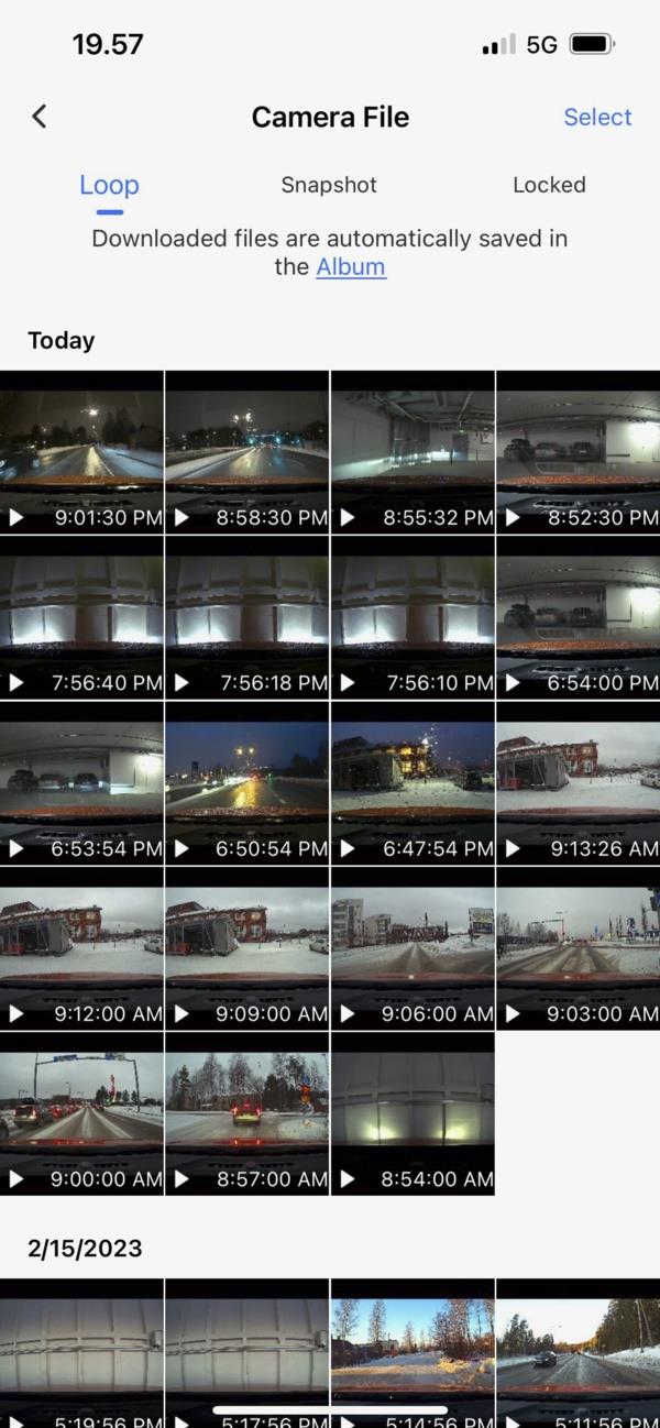 Asetuksista voi valita myös kameran tärinätunnistuksen herkkyyden eli miten kovasti pitää kolahtaa, että kamera lukitsee videon, eikä kirjoita sen yli missään vaiheessa. Testasin ensin “High”-herkkyyttä, mutta se sai kameran lukitsemaan videoita ihan tavallisessa ajossa, kun osuin vähänkin johonkin kuoppaan. Vaihdoin “Middle”-vaihtoehtoon ja nyt se ei ainakaan ole lukinnut turhia videoita.