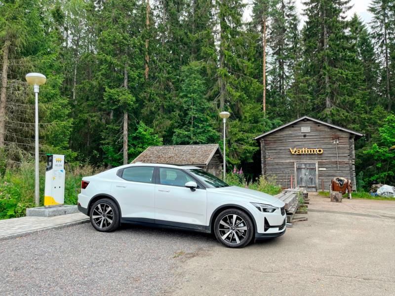 Laskeskelimme, että kätköilyyn ja syömiseen menisi pari tuntia, joten viereinen 22 kW hidaslaturi, josta Polestar lataa 11 kW teholla, olisi itse asiassa aika hyvä vaihtoehto auto akun täyttämiseen. Ei tarvitsisi edes käydä kesken ruokailun pysäyttämässä minuuttihintaista latausta, koska tässää maksetaan kilowateista.