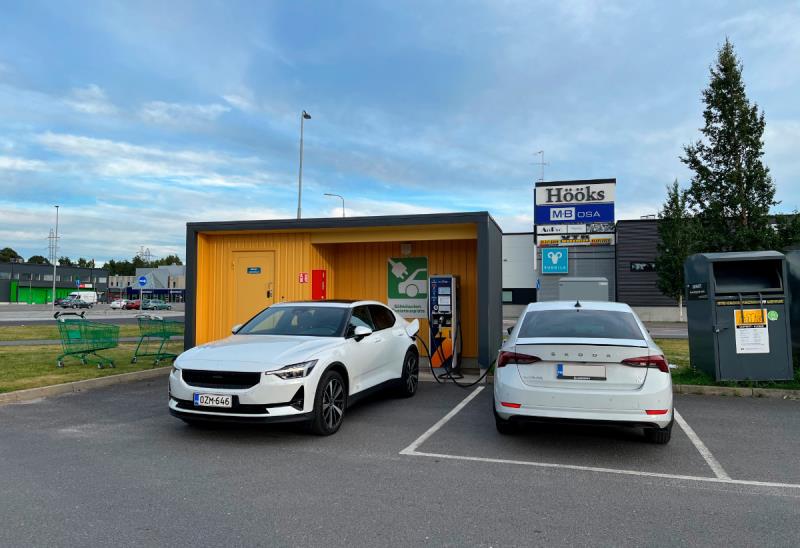 Olin jostain saanut käsityksen, että Pyhäjärvellä olisi kohtuu hyvät pikalatausmahdollisuudet, mutta ei siellä itse asiassa ole kuin kaksi 50 kW pikalaturia; Helen Vaskikelloilla ja Recharge viereisellä ABC:lla. Teslojen tilanne sen sijaan on hyvä, sillä ABC:lla on nelipaikkainen Supercharger.