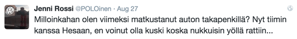 Alun perin en ajatellut, että tästä reissusta syntyisi mitään blogattavaa, vaan istuisin vaan kyydissä (ja tylsistyisin koska unohdin matkalukemiset kotiin). Twiittasin kuitenkin matkan varrelta sen verran paljon, että Aki kysyi, että kai blogaan reissusta. No miksipä ei! Samalla paluumatkakin kuluu rattoisammin.