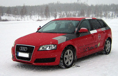Väistötehtävän sivussa pääsimme kukin vuorollamme testaamaan nelivetoista Audia toisen opettajan antaessa vinkkejä pelkääjän paikalta. Radan alkupäässä olevaan mäkeen neliveto kiipesi aivan käsittämättömän näppärästi ja tuntui siltä, kuin mitään mäkeä ei olisi ollutkaan. Poloisellakin mäen toki pääsi ylös, mutta hieman vaivalloista se oli nelivetoon verrattuna.