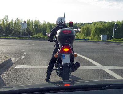 Parilla ensimmäisellä kerralla kun mieheni ajoi perässäni autolla pitäen sopivan isoa turvaväliä. Tämä siksi, että hän tiesi että harjoittelen vasta, mutta joku hätäisempi jos olisi liimautunut kiinni takapuoleen ja olisin mokannut jotain, niin olisi voinut käydä ikävästi.