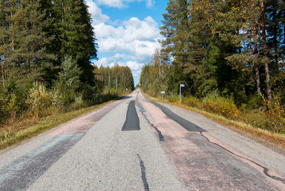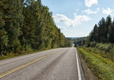 Vanhaa nelostietä. Tässä on hyvä lepuuttaa kaasukättä, kun antaa pyörän rullata alamäkeen kytkin pohjassa.