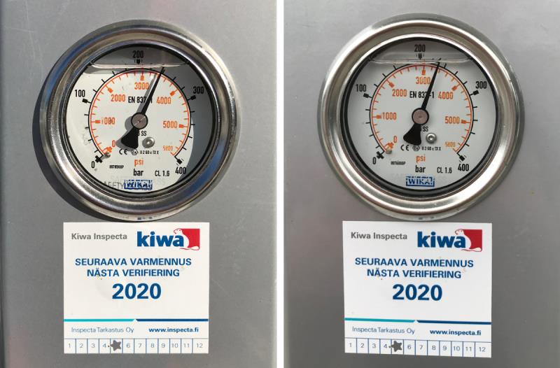 Kaasun tankkauksen yhteydessä tarkkailimme kaasuaseman omaa painetta. Jos se olisi tippunut selkeästi kilpailijoiden välillä, olisi autojen saama kaasumäärä voinut olla eri. Nyt se pysyi kuitenkin hyvin samanlaisena.