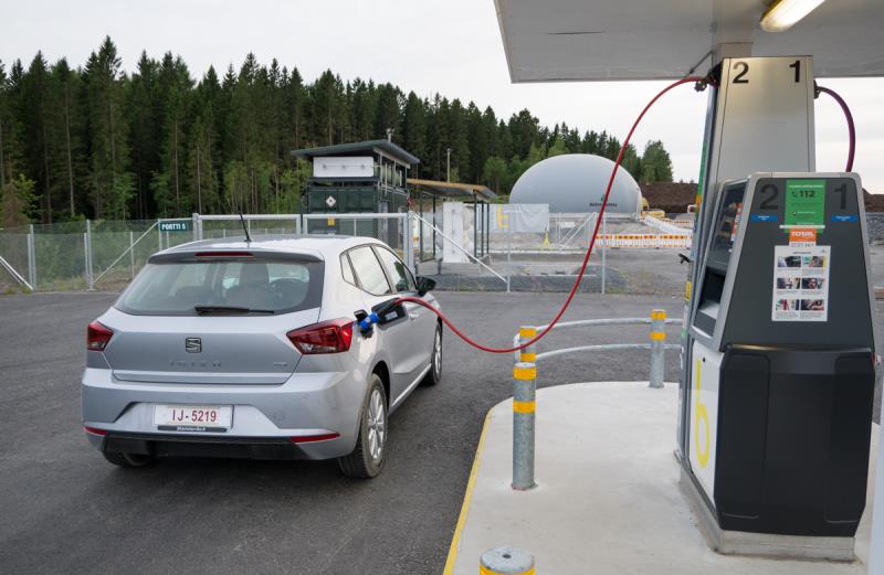 Mustankorkean jäteasemalla tankkasimme autot täyteen paikallista biokaasua. Kaasun tankkaus oli superhelppoa verrattuna bensan ja dieselin kilpailutankkauksiin! Pumppu täyttää kaasutankin parissa minuutissa ja lopettaa automaattisesti, kun kaasua ei mahdu tankkiin enempää.