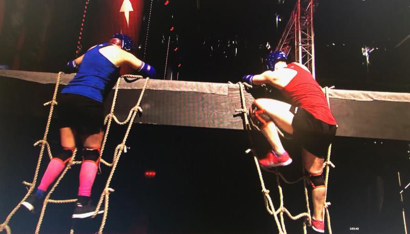 Homma alkoi seinällä, jonka yli piti päästä köyden avulla tai ilman. Ihan sama lavaste kuin viime vuonna! Olin katsonut viime kautta silmä kovana ennen kisaa ja miettinyt, miten seinän pääsisi parhaiten yli. Harmikseni mulla ei ollut missään paikkaa jossa olisin voinut harjoitella sitä.