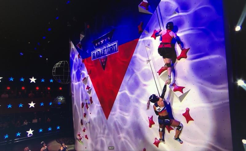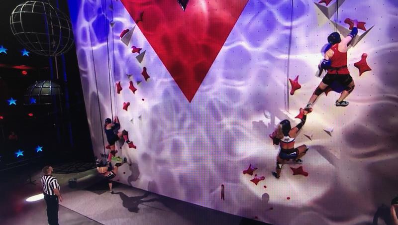 Pääsin kohtuulisesti liikkeelle seinälle ja yllättävänkin ylös ennen kuin gladiaattori lähti liikkeelle. Yleisössä ollut äitini sanoi, että menin kuin apina seinällä, tosi kovaa vauhtia. Mutta sitten gladiaattori tarrasi jalkaani. Koitin ravistella pois ja osittain onnistuinkin? Mutta sitten multa petti tasapaino, kun oikealla ollut ote vähän hankalan muotoinen (tai gladiaattori oli taas kiinni jalassa) ja kierähdin pois seinältä. Harmi! Mutta oli tosi hauskaa. Perässä mulla oli supergladiaattori Safiiri, joka on varmaan kaikista pahin koska on niin kova ja monipuolinen.