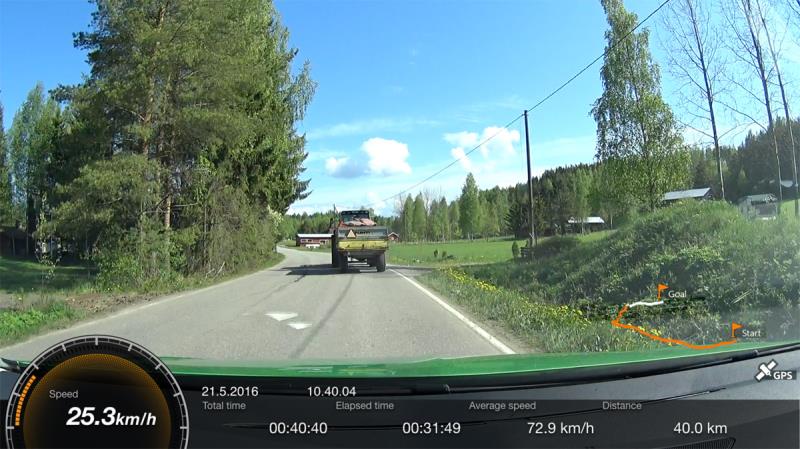 Niin mikä tuli vastaan?! Videolta katsottuna ohitustilaa on reilusti, mutta tuolla hetkellä se tuntui kaikelta muulta etenkin, kun ei mitään hajua tuleeko joku vastaan tuolta vasemmalle kaartuvasta mutkasta ja vauhtiakin oli.