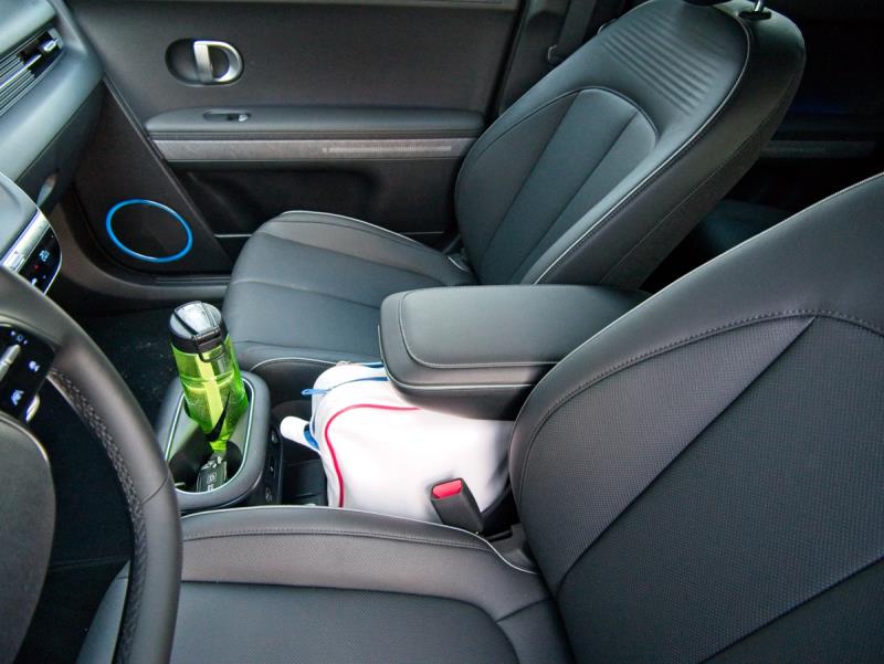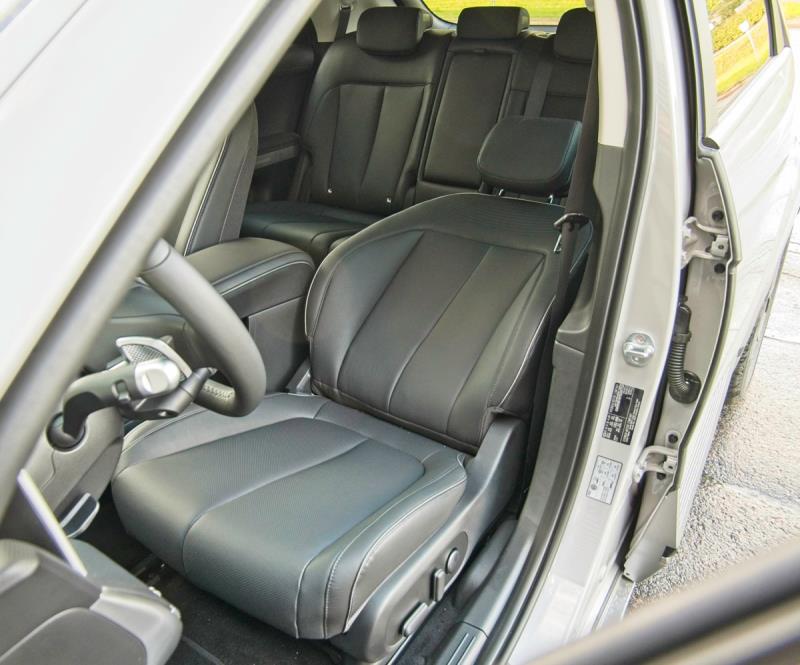 Tykkäsin IONIQ 5:n istuimista tosi paljon. Ahteri puutunut pidemmälläkään matkalla. Sivuttaistukea on riittävästi sekä penkissä että selkänojassa. Leveäselkäiselle selkänoja saattaa olla jopa hieman kapea.