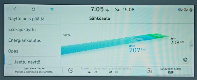 Sähköisen ajon asetukset löytyvät burgerikonin takaa.