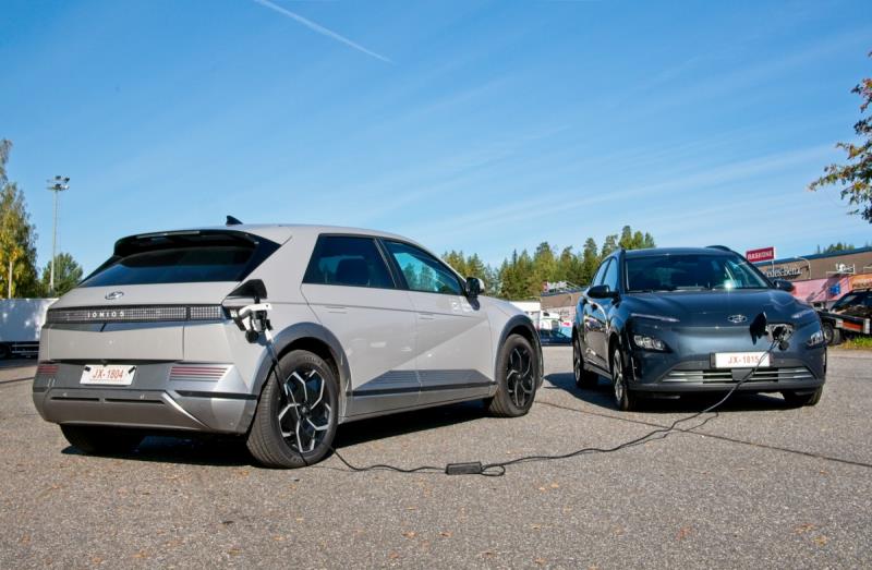 IONIQilla voi ladata vaikka toista sähköautoa, jos siitä on akku vähissä!