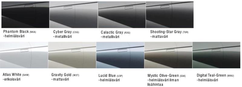 Hyundai IONIQ 5 värikartta on masentava! (Kuvakaappaus Hyundai IONIQ 5 hinnastosta.)