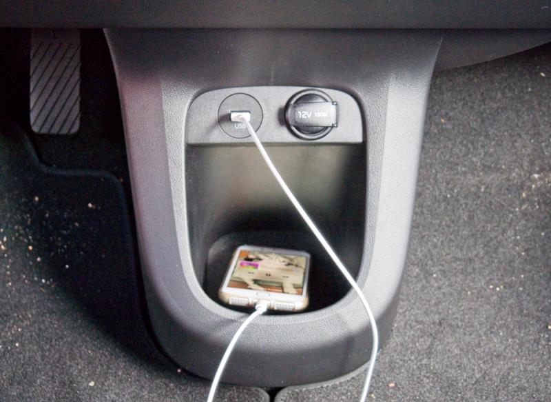 Yksi sukopistoke on takapenkkien jalkatilassa, ja siitä voi ladata matkan aikana vaikka läppäriä. Lisäksi auton mukana toimitetaan adapteri, jolla sen latauspistokkeen saa muutettua sukopistorasiaksi.