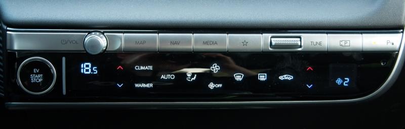 Näiden oikeasti painettavien nappuloiden alla on tunnoton kosketuspinta ilmastoinnin säädöille. Se on vähän eri paria tuon ylemmän painikerivistön kanssa, mutta on sentään omat painikkeet ja vieläpä valaistut. Sekään ei ole nykyisin itsestäänselvää, kuten Volkswagen ID.3:n koeajo osoitti.