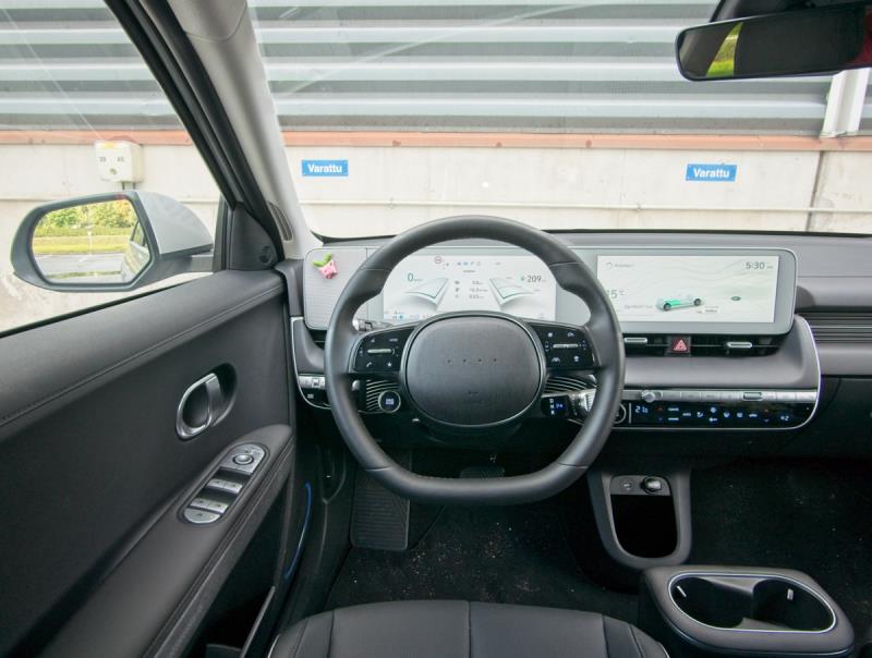 IONIQ 5:n laatuvaikutelma on kohdillaan. Se on hiljainen ja materiaalit laadukkaita. Auto on ihan eri planeetalta kuin V2L-latauskuvan järjestämistä varten muutaman sata metriä ajamani Hyundai Kona, joka sekin olisi maksanut täyteen varusteltuna lähes 50 ke.