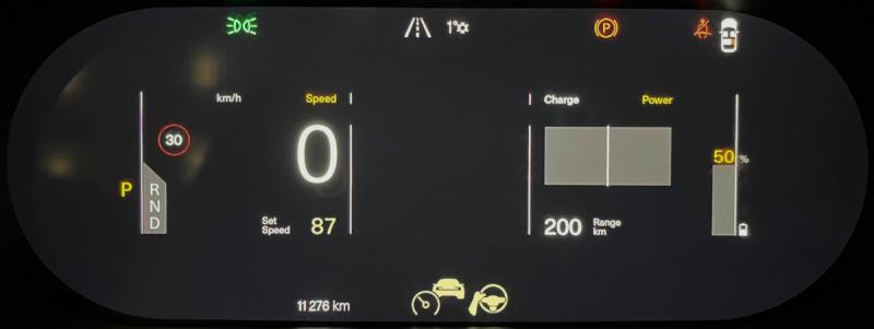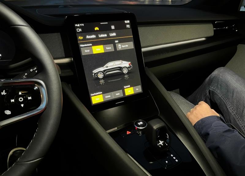 Sähkösäätöinen istuin on hyvin tuettu ja mukava ajoasento löytyi nopeasti. Tykkään aina istuimista, joissa on etu- ja takareunalle erilliset säädöt ja Polestarista löytyy ne myös.