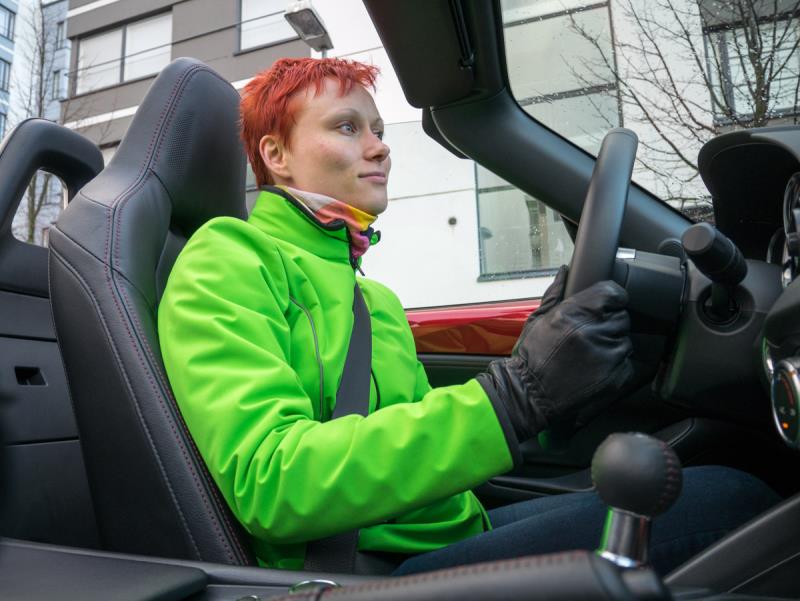 Koska aamulla satoi, koeajo piti tietysti suorittaa katto ylhäällä. Sateen tauottua pääsin kuitenkin kokeilemaan autoa muutaman kilsan matkalla myös katto alhaalla ja siinä oli kyllä tunnelmaa! Ilman lämpötila oli +5 °C, mutta sisällä avonaisessa ohjaamossa oli silti oikein lämmin. Mun piti oikein varmistua ilman lämpötilasta nostamalla käsi tuulilasia korkeammalle ja kyllä siellä aika vilpoinen tuuli oli. Ohjaamossa sen sijaan oli oma lämmin mikroilmastonsa.