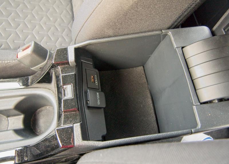 Keskikyynärnojan alla olevassa lokerossa on USB-pistoke ja tupakansytytinpistoke. Lokeron pohjan ruuveja peittää yllättäen vain halpa irtonainen huopapala.