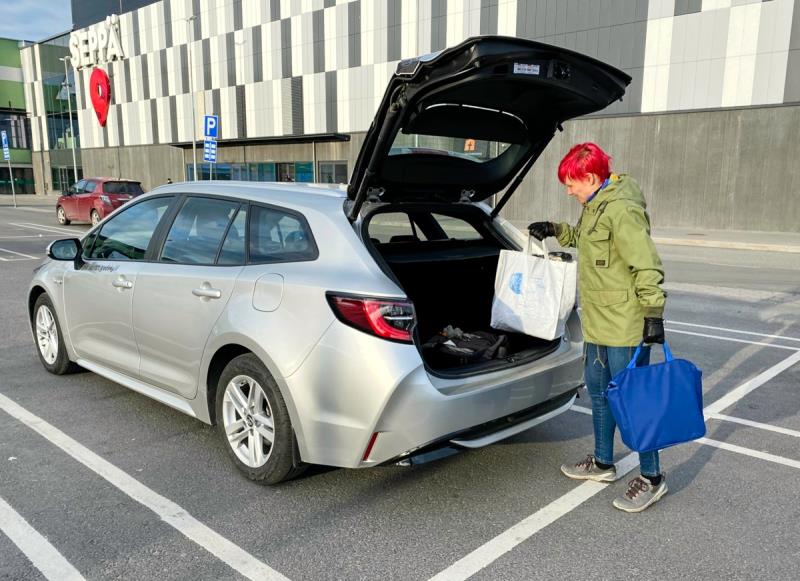 Corollan jalan heilautuksella avattava takaluukku on eri kätevä, kun on kädet täynnä ostoksia.
