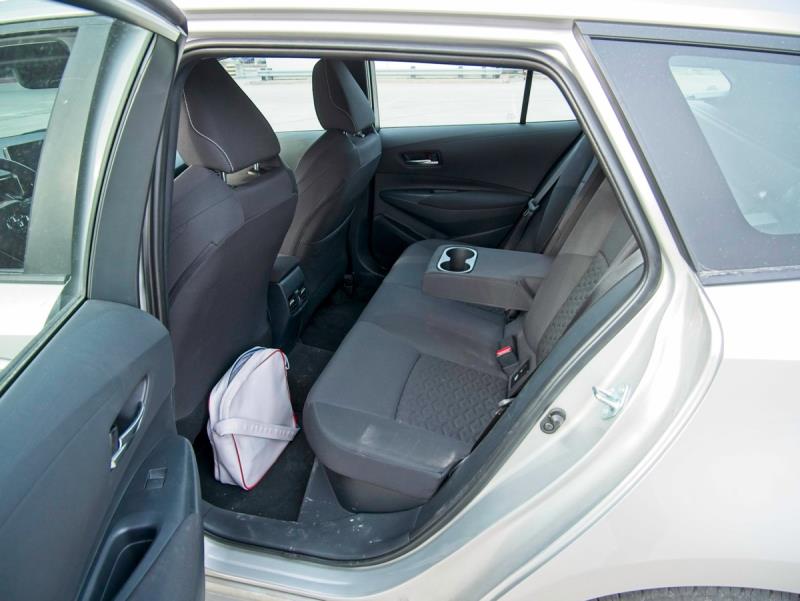 Toyota Corolla Touring Sports farmarimallin takapenkille mahtuu aikuinen hyvin istumaan. Farkun akseliväli on 270 cm, mikä on 6 cm enemmän kuin hatchbackissa ja sedanissa, joten siinä on takana pikkasen enemmän jalkatilaa.