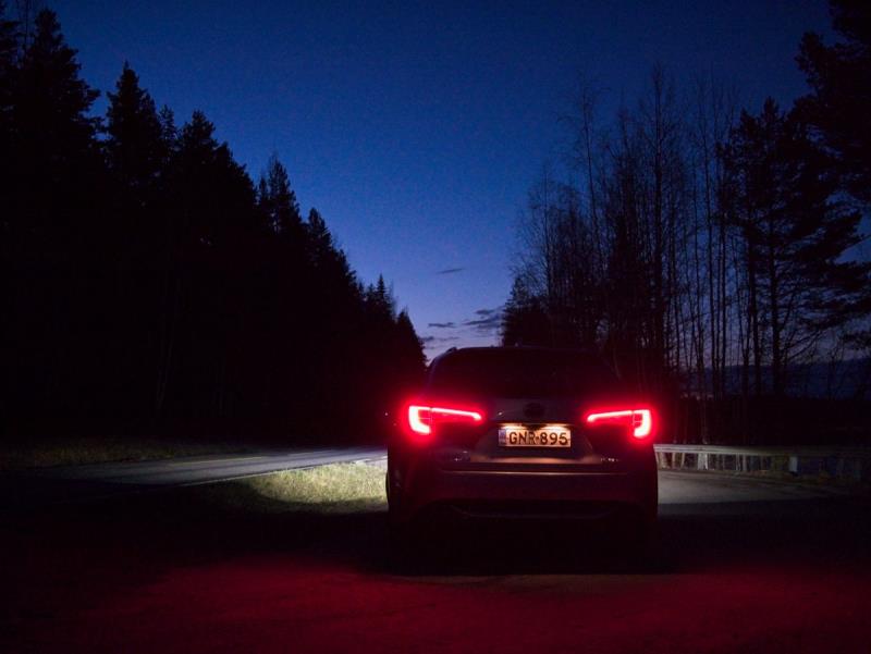 Tunnelmakuvaa yölliseltä koeajolenkiltä. Corollan rakavalot ovat hyvän näköiset.