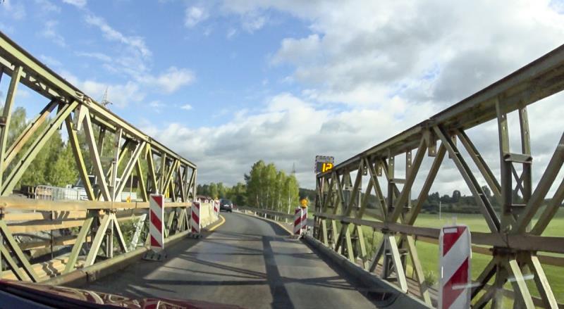 Aamupäivän siltatyömaalla piti ajaa jonossa tosi hitaasti, kun lopulta päästiin läpi valoista.