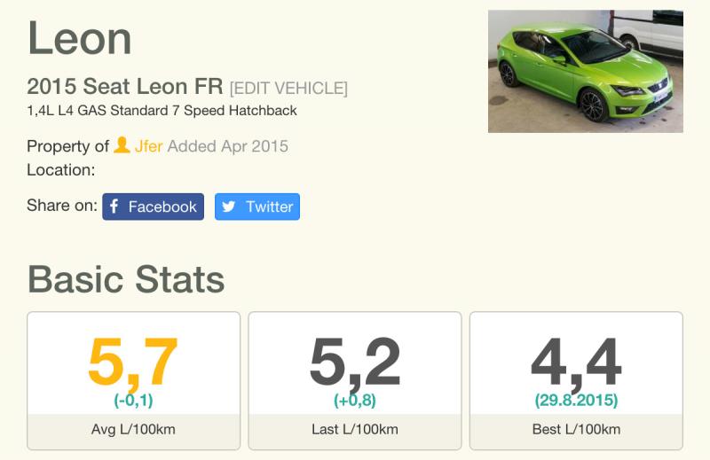 Olen kirjailut kaikki Leonin tankkaukset Fuellyyn. Kaikki kulutustiedot ovat siellä julkisia, joten jos kiinnostaa seurata, niin klikkaa tästä! Kulutuskäppyröissä on Ecorunien kohdalla aina vähän hassu piikki, kun kisatankkaus nostaa kulutuksen pilviin (ja kisan lopetustankkaus taas laskee), mutta kokonaisuutena siitä on kuitenkin kätevä seurata kulutuksia.