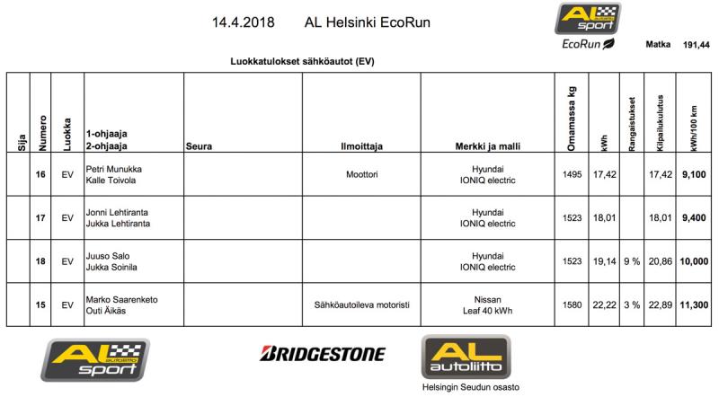Uutena luokkana Cupin ulkopuolella oli sähköautot, joita olikin uskaltautunut mukaan neljä kappaletta: kolme Hyundai Ioniqia ja lisäksi autobloggaajakollegani Marko uudella Nissan Leafillaan. Sähköautojen kilpailun voitti Petri Munukka Moottori-lehden “Vuosi sähköllä” -juttusarjan Hyundai Ioniqilla. Marko jäi odotustensa mukaisesti Leafillaan viimeiseksi, koska Hyundai Ioniqit vain ovat yksinkertaisesti taloudellisempia. Mukavaa kuitenkin oli ollut. Markon jutun kilpailusta voit lukea täältä!