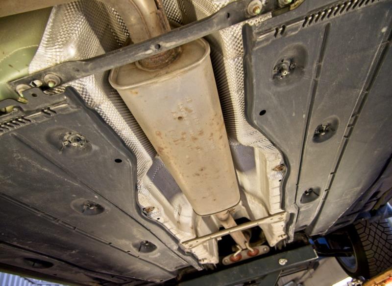 Viimeisenä tutkittin auton alusta, akselit, jarrulevyt ja ripustukset yms. Minusta on aina hauska päästä katsomaan auton alle ja sinne nytkin menin kurkistelemaan. Taka-akselissa oli havaittavissa pientä pintaruostetta, mutta ei mitään pahaa. Pakoputken olen kuvitellut ruostuvan autoissa tosi nopeasti, mutta sekin näytti oikein hyvältä, vain muutamia ruostepilkkuja oli havaittavissa.