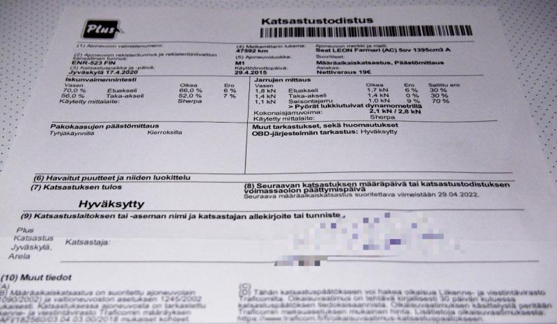 Lopputuloksena Leon sai katsastuksesta terveen paperit; mitään huomauttamista ei ollut missään.