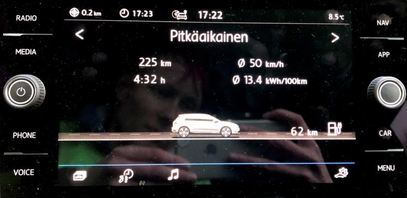 Koko päivän keskikulutus 13,4 kWh/100 km.