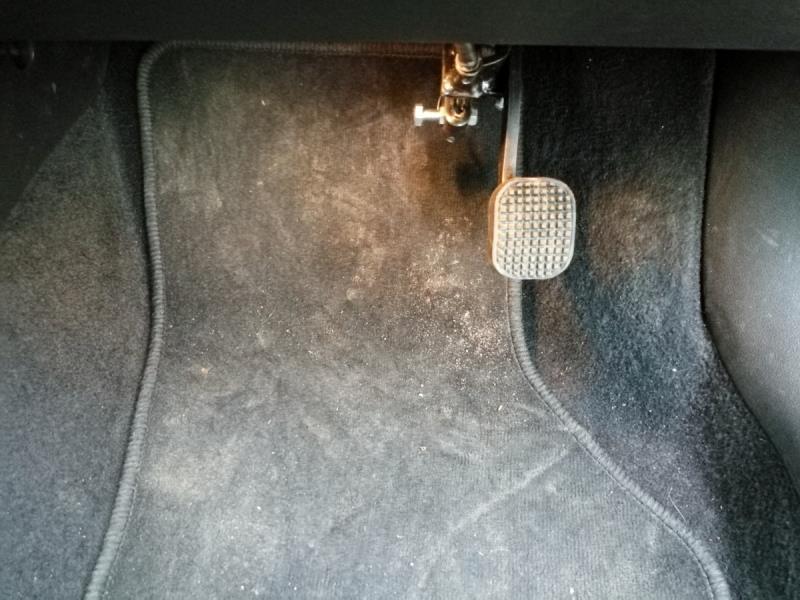 Edellisen kuvan opetuspoljin paikallaan. Teline jää siististi piiloon jalkatilan maton alle. (Kuva: Autoliitto)