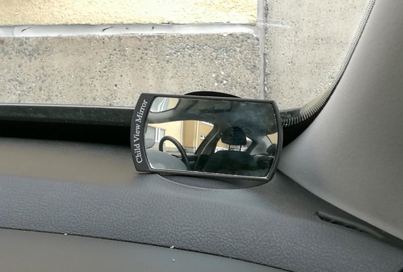 Oikeanpuoleisen A-pilarin juureen imukupilla kiinnitetty silmäpeili/laajakulmapeili mahdollistaa oppilaan seuraamisen ajon aikana. (Kuva: Autoliitto)