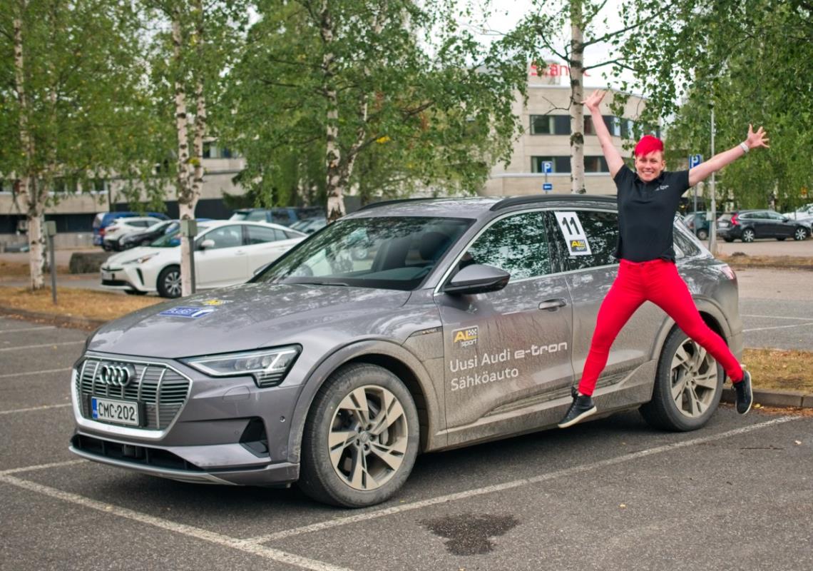 Minun piti saada alunperin lainaan e-Golf, mutta se meni kaupaksi juuri ennen kisaa ja piti kehittää uusi suunnitelma. Onneksi Audi e-tron liikeni, sillä en halua ajaa enää tankattavilla autoilla tankkaushärdellin vuoksi.