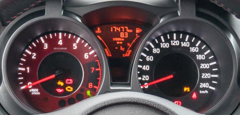 Pitkä miinus Jukelle tulee myös aataminaikaisesta ajotietokoneesta, joka oli siis sama kuin edellisessä mallissa. Pieni nestekidenäyttö nopeus- ja kierroslukumittarien välissä tuntui vain niin vanhentuneelta; etenkin kun olimme juuri testanneet mm. uutta Qashqaita, jonka mittaristossa oli näyttö liikennemerkkien tunnistuksineen. Eipä ollut nestekidenäytössä sellaista.