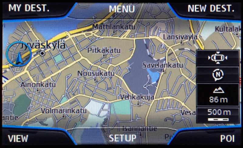 Ihan hyvä kysymys, että mistä karttadata on peräisin. Isoilta navigaattorifirmoilta vai jostain muualta. Ei voi tietää... Mutta nyt kävi kyllä kiinnostamaan, että miltä Jkl keskusta näyttää vanhalla Navigon-navigaattorillani.