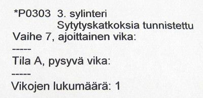 Korjaamolla kerroin ongelmani ja sen että seuraavana aamuna pitäisi olla seitsemältä lähdössä takaisin Jyväskylään. Yksi huoltomies ajoi heti Polon sisälle halliin ja luki vikamuistista, että 3. sylinterin sytytyspuola oli hajonnut. Ymmärsin että uusi puola maksaisi noin 50 e mutta eipä sillä nyt hirveästi ollut väliä, sillä auto oli joka tapauksessa pakko saada kuntoon.