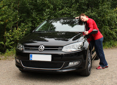 Juteltuani mieheni kanssa ("P kielsi meitä ostamasta Golfia!") peruimme Golfin koeajon kokonaan (toivottavasti Ahjoauton myyjällä oli Tampereella kiva reissu Golfilla, sillä se saattoi periaatteessa aiheuttaa kauppojen menetyksen) ja pyysimme sen sijaan Autotarvikkeen myyjältä koeajo-Polon lainaan koko illaksi vähän tarkempaa testausta varten. Illalla T kyllä tunnusti, ettei ollut viikonlopun jälkeen enää edes ajatellut Golfin ostamista, mutta olisi minun mielikseni lähtenyt ajelemaan sillä.