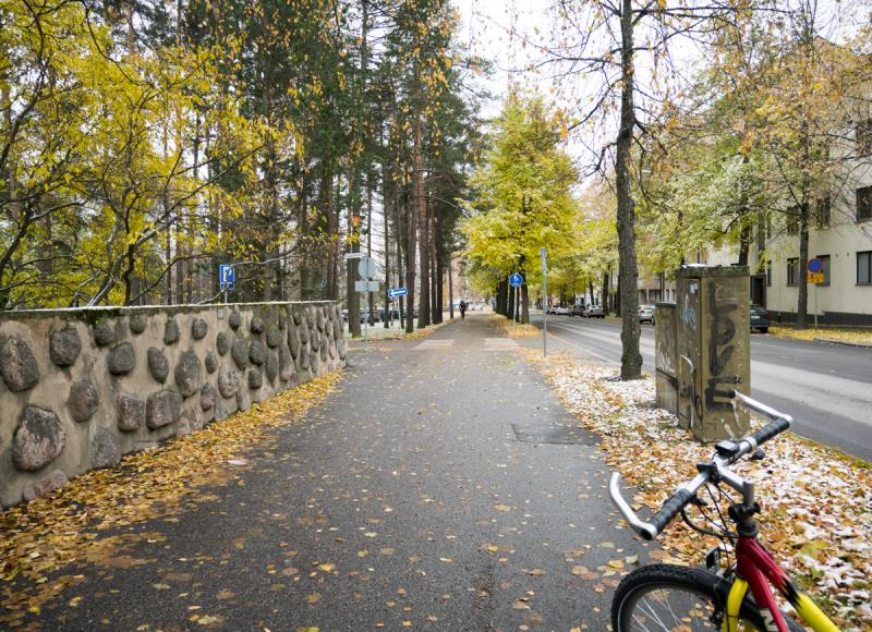 Mä olen aina mieltänyt pyörälle vaarallisemmaksi samaan suuntaan ajavien eteen kääntymisen, kun pyöräilijät pitää tajuta katsoa kuolleesta kulmasta. Ja tuossa on vielä puut haittaamassa. Silti Puistokadulla koen vaarallisimmiksi kolmion takaa tulevat autoilijat, jotka eivät tajua väistää autojen lisäksi kevyenliikenteenväylällä kulkijoita. Mutta jos tuossa halutaan yksisuuntaisuutta, niin minäkin näkisin mieluiten oikeat pyöräkaistat autotien reunassa. Sitä en ole koskaan ajatellut etä pyöräkaistojen pitäisi olla korotettuja. Mitä tarkoitit, että niiltä näkyisi pyöräilijät paremmin kuin normaaleilta? Eihän se korotus kuitenkaan olisi kuin muutaman sentin.