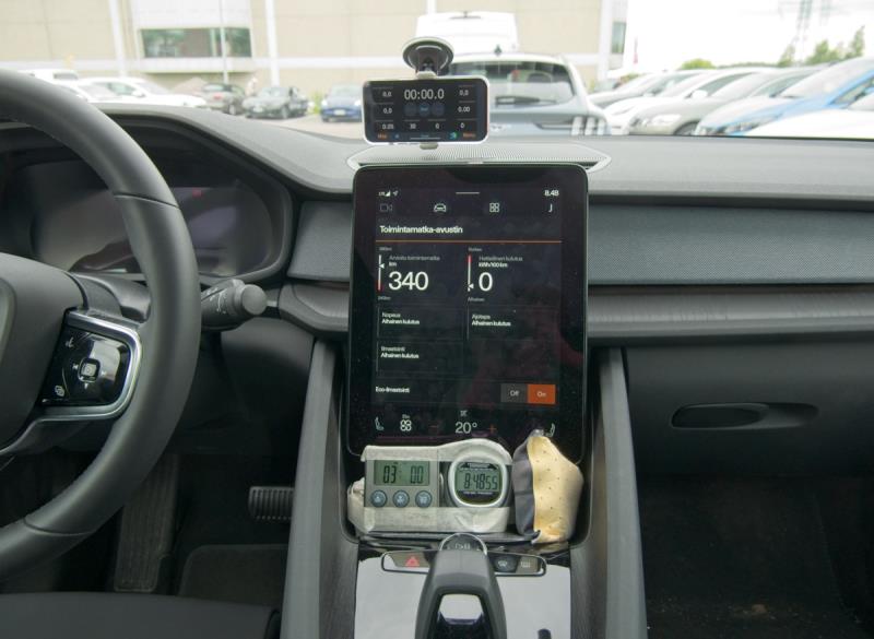 Kulutusmittareita Polestarissa on kaksi, joista vain toisen voi nollata käsin. Tämä toimi kilpailun kulutusmittarina. En siis voinut seurata yksittäisten jaksojen kulutusta kisan aikana, mutta laskin niiden kulutukset jälkeenpäin tähän juttuun.